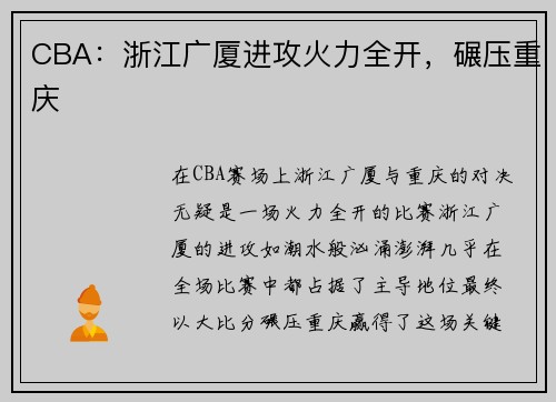 在CBA赛场上,浙江广厦与重庆的对决无疑是一场火力全开的比赛。浙江广厦的进攻如潮水般汹涌澎湃,几乎在全场比赛中都占据了主导地位,最终以大比分碾压重庆,赢得了这场关键战役。在这场比赛中,浙江广厦不仅仅在进攻端展现出了强大的火力,而且防守同样严密,能够有效限制对手的反击。本文将从四个方面详细分析浙江广厦...
